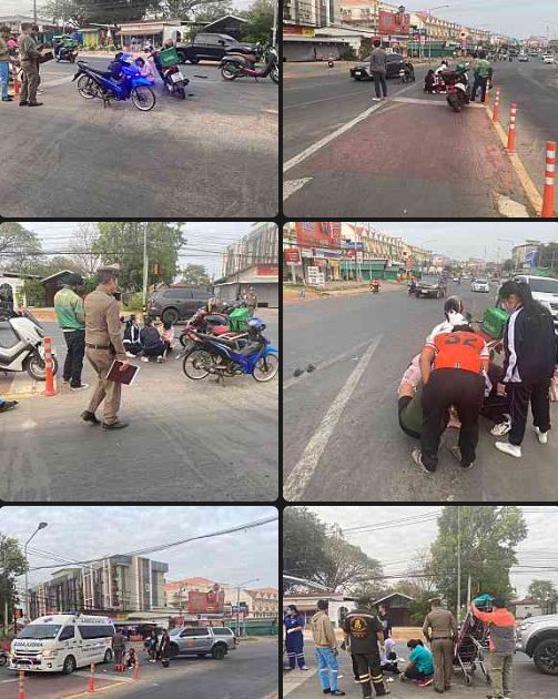 เจ้าหน้าที่ตำรวจ สภ.เขวาใหญ่ พนักงานสอบสวนเวร พร้อมชุดจราจร และผู้ช่วยฯ ตรวจสอบอุบัติเหตุรถจักรยานยนต์เฉี่ยวชนกัน