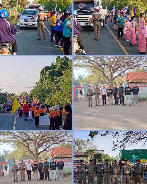 ชุดจราจรอำนวยความสะดวกการจราจรขบวนพาเหรดของโรงเรียน ในเขตตำบลเขวาใหญ่และตำบลขามเรียง