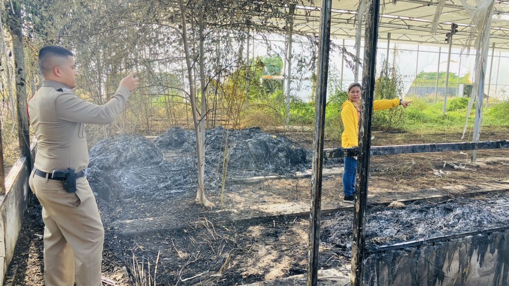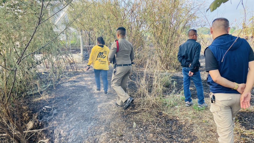 วันนี้(25 เม.ย.68)เวลา16.05น. ร.ต.อ.ประดิษฐ์ โคตรชารี ร้อยเวร3-0 พร้อมชุดสืบสวน ตรวจที่เกิดเหตุเพลิงไหม้ โรงเพาะชำร้างบริษัทมหากัญ ม.16 ต.ขามเรียง อ.กันทรวิชัย จ.มหาสารคาม มีน.ส.สุวรรณ ภูศรี แม่บ้านผู้ดูแลสถานที่ นำตรวจที่เกิดเหตุ