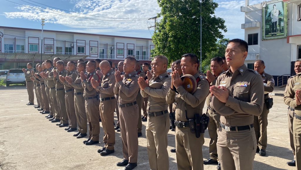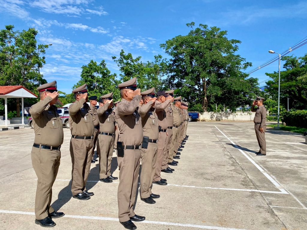 วันที่ 13 มิ.ย. 67 เวลา 07.50 น. พ.ต.อ.พงษ์ศิริ พลเยี่ยม ผกก.สภ.เขวาใหญ่ นำข้าราชการตำรวจในสังกัดทุกนาย รวมแถวเคารพธงชาติ หน้า สภ.ฯ ร่วมร้องเพลงชาติ, กล่าวคำปฏิญาณ, อุดมคติตำรวจ, สวดมนต์ไหว้พระ, ตรวจทรงผม,เครื่องแบบ และได้กำชับการปฏิบัติราชการตามนโยบายเร่งด่วนผู้บังคับบัญชา การประพฤติปฏิบัติตนให้อยู่ในระเบียบวินัย การปกครองตามนัย 1212 และห้ามข้าราชการตำรวจยุ่งเกี่ยวกับยาเสพติดและอบายมุข