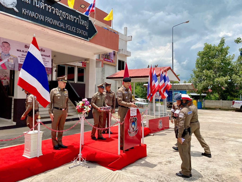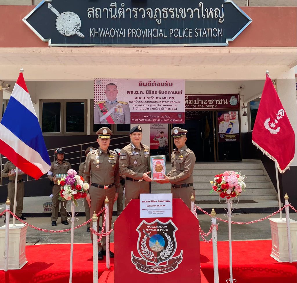 โดยมี พล.ต.ต.พรชัย ชลอเดช ผบก.ภ.จว.มหาสารคาม , พ.ต.อ.พงษ์ศิริ พลเยี่ยม ผกก.สภ.เขวาใหญ่, นายปราการ เจริญสุรกล ประธาน กต.ตร.สภ.เขวาใหญ่ พร้อม ข้าราชการตำรวจในสังกัดทุกนาย ให้การต้อนรับ ณ สถานีตำรวจภูธรเขวาใหญ่