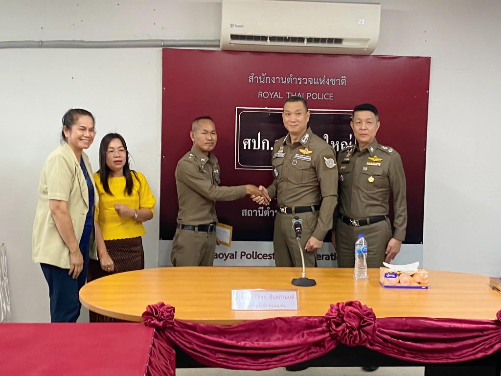 วันmuj 30 ส.ค. 67 เวลา 11.45 น. พล.ต.ท.นิธิธร จินตกานนท์ ผบช. ประจำ สง.ผบ.ตร./หัวหน้าคณะทำงานเสริมสร้างภาพลักษณ์ตำรวจจราจร ศูนย์บริหารงานจราจร สำนักงานตำรวจแห่งชาติ (คจร.ตร.) เป็นผู้แทน ตร. เดินทางมาตรวจเยี่ยมและมอบเงินกองทุนสวัสดิการ ตร. เพื่อบำรุงขวัญ แก่ข้าราชการตำรวจที่ได้รับบาดเจ็บจากการปฏิบัติหน้าที่ ราย ร.ต.อ.รณชัย ภูหัดทำ รอง สว.จร.สภ.เขวาใหญ่ ภ.จว.มหาสารคาม ภ.4