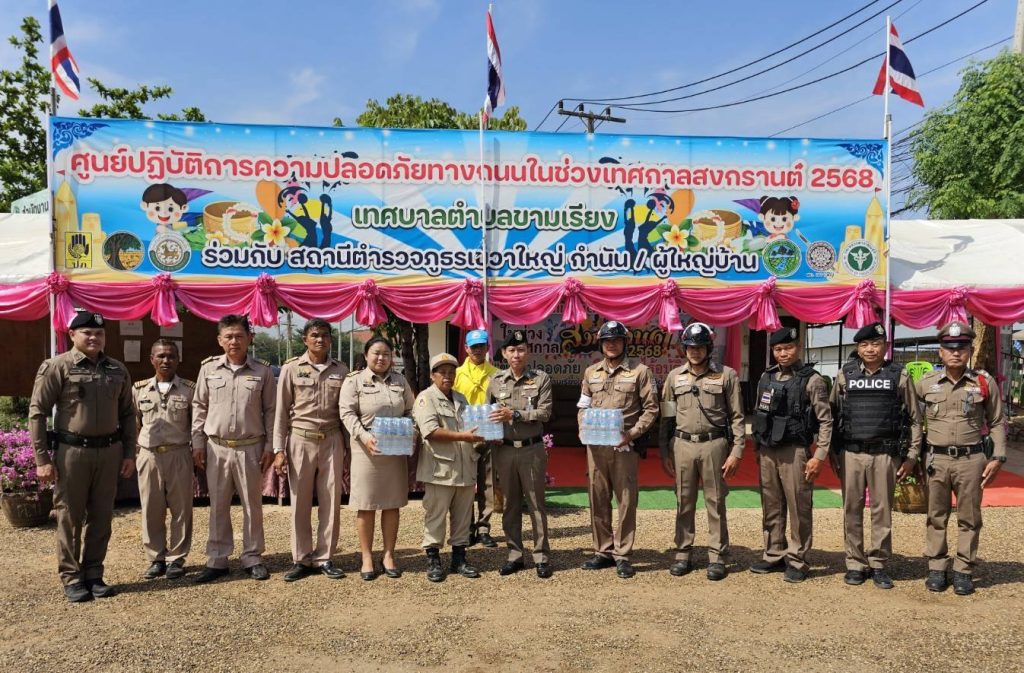 ได้เดินทางมาตรวจเยี่ยมศูนย์ปฏิบัติการความปลอดภัยทางถนนในช่วงเทศกาลสงกรานต์ 2568 ณ. จุดบริการประชาชนตู้ยามขามเรียงขามเรียง อำเภอกันทรวิชัยฯ โดยการนี้ พ.ต.อ.วิโรจน์ ภูมิเพชรฤาชา ผกก.สภ.เขวาใหญ่ มอบหมายให้ พ.ต.ท.สมภพ ปาปะใน รองผกก.สส.ฯ พร้อมข้าราชการตำรวจจิตอาสา,เจ้าหน้าที่ตำรวจประจำจุดบริการฯ, เจ้าหน้าที่ฝ่ายปกครอง และเจ้าหน้าที่ อปพร. ให้การต้อนรับ, ได้พูดคุยให้กำลังใจผู้ปฏิบัติหน้าที่ และมอบนโยบายในการปฏิบัติหน้าที่ และได้มอบน้ำดื่มให้ผู้ปฏิบัติหน้าที่ประจำจุดบริการฯ