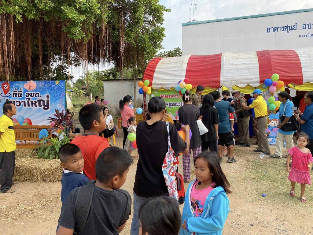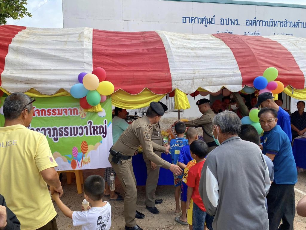 วันที่ 13 ม.ค. 2567 เวลา 08.30 น. เนื่องในวันเด็กแห่งชาติ พ.ต.อ.พงษ์ศิริ พลเยี่ยม ผกก.สภ.เขวาใหญ่ มอบหมายให้ พ.ต.ต.ณัฐพงษ์ บึงบัว สวป.เขวาใหญ่ พร้อมด้วย ชุด ชมส. และ เจ้าหน้าที่ตำรวจจิตอาสา เข้าร่วมกิจกรรมวันเด็กแห่งชาติ ณ บริเวณที่ทำการ อบต.เขวาใหญ่ ต.เขวาใหญ่ อ.กันทรวิชัยฯ โดยได้นำอาหารและขนม ไปแจกเด็กๆ และผู้เข้าร่วมกิจกรรมในงานดังกล่าว