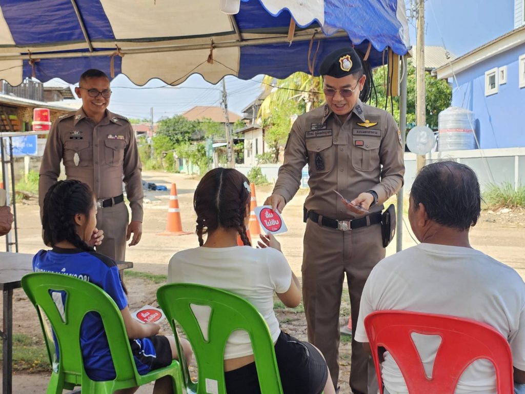 พร้อมข้าราชการตำรวจ สภ.เขวาใหญ่ ออกตรวจเยี่ยมจุดตรวจชุมชน พร้อม ประชาสัมพันธ์ รณรงค์ “ดื่มไม่ขับ” “ดื่มแล้วขับ อาจเป็นฆาตกร”