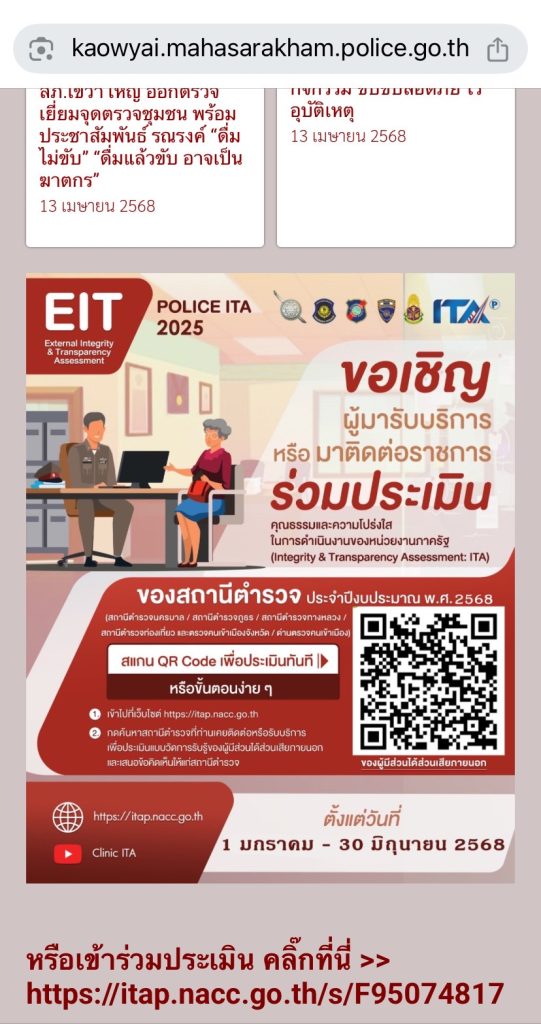 ประชาสัมพันธ์ แบบวัด EIT ของหน่วยงานผ่าน Link หรือ QR Code ที่ download จากระบบ ITA โดยให้แสดงไว้บนหน้าแรกของเว็บไซต์หลักของหน่วยงาน